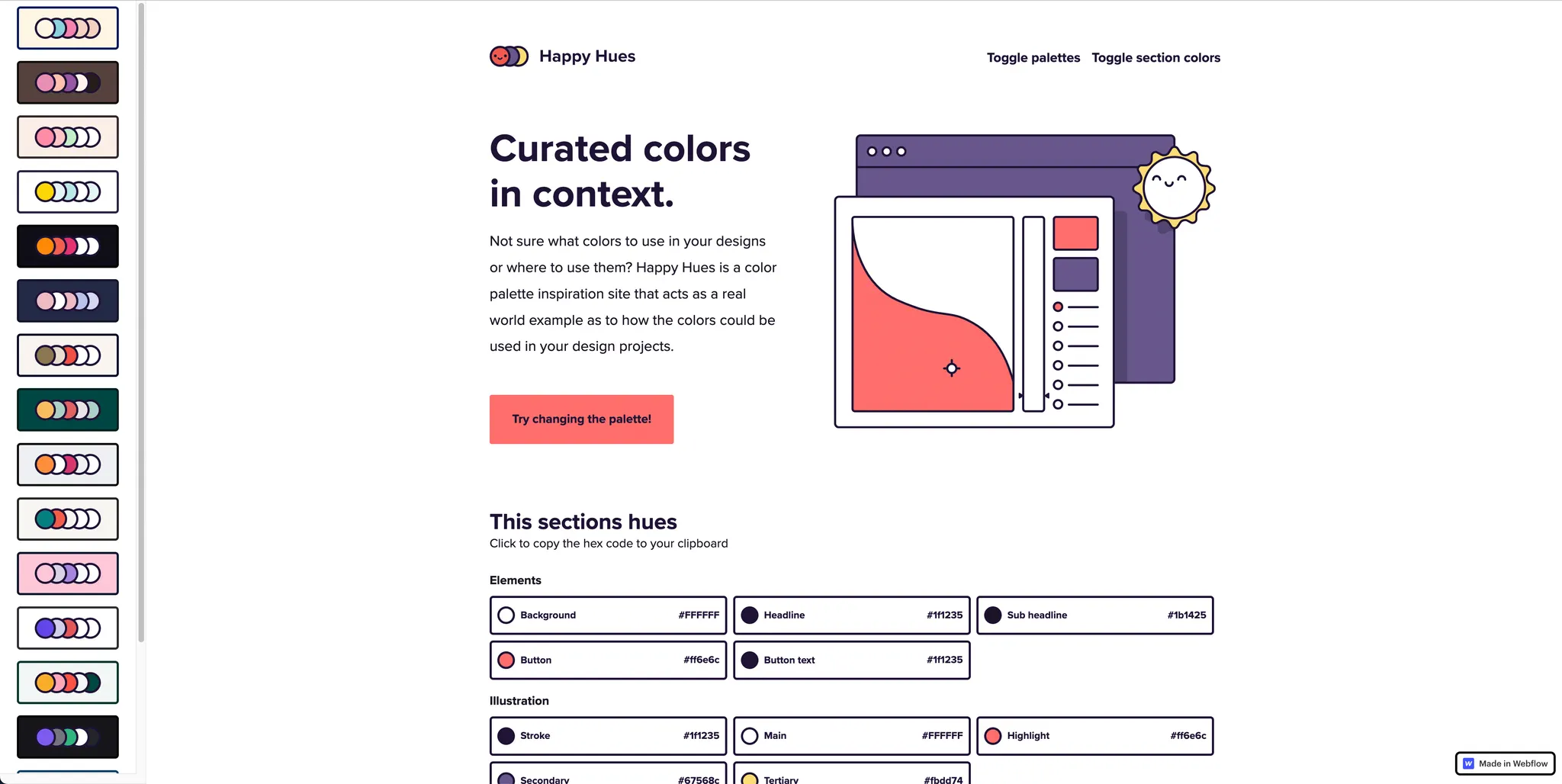 왼쪽에서 색상을 선택해보세요 웹사이트에서 바로 적용해 확인 할 수 있습니다. 해당 사이트는 디자이너 Mackenzie Child Webflow를 사용하여 코드없이 디자인 및 구축 되었습니다.