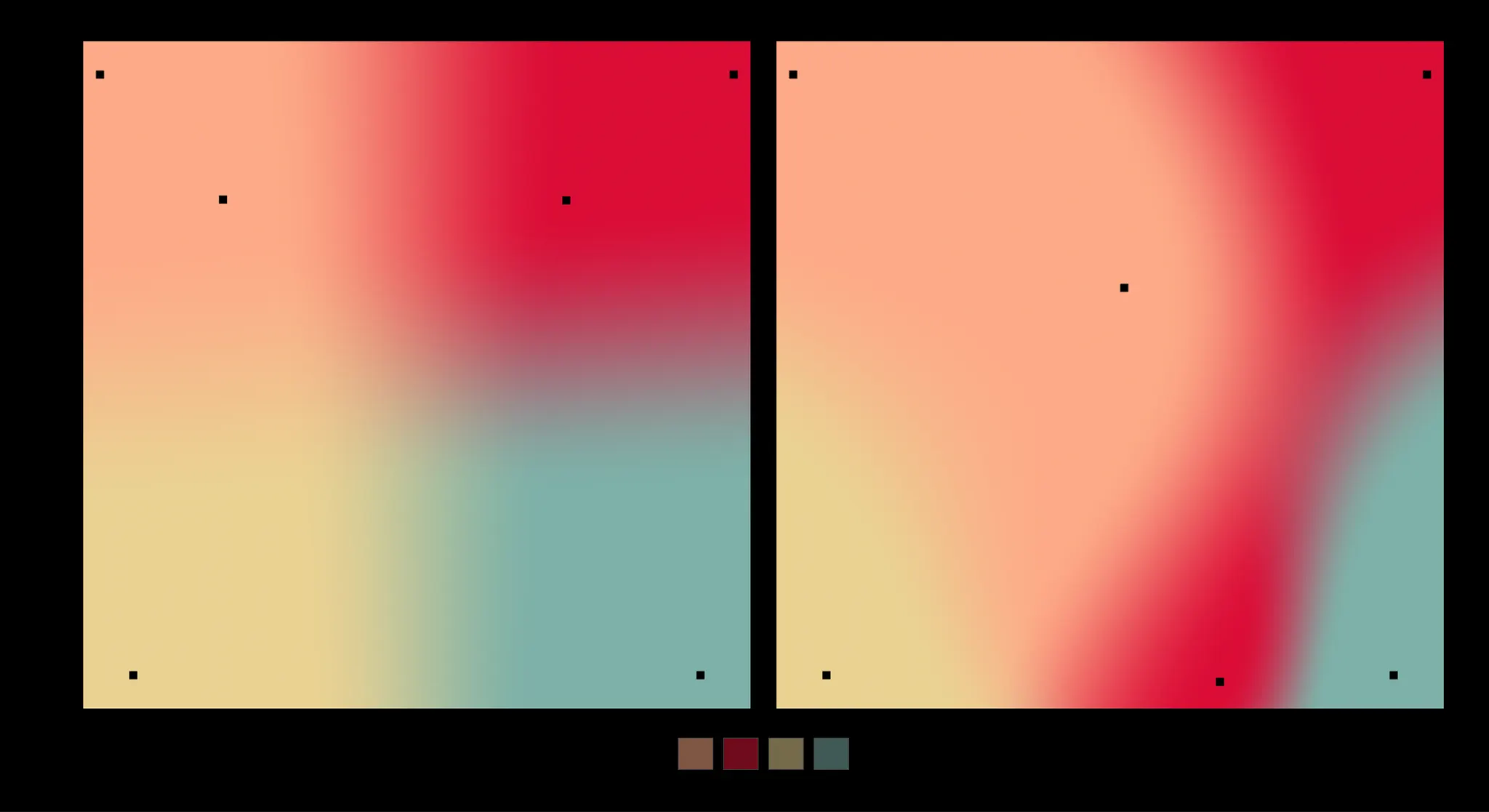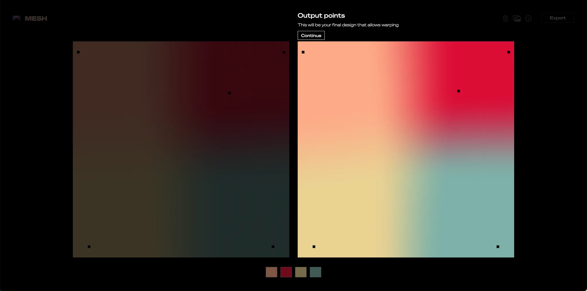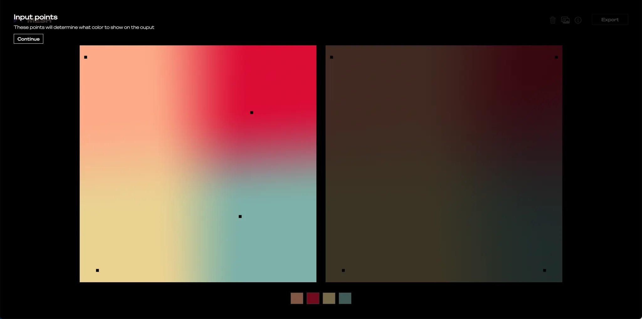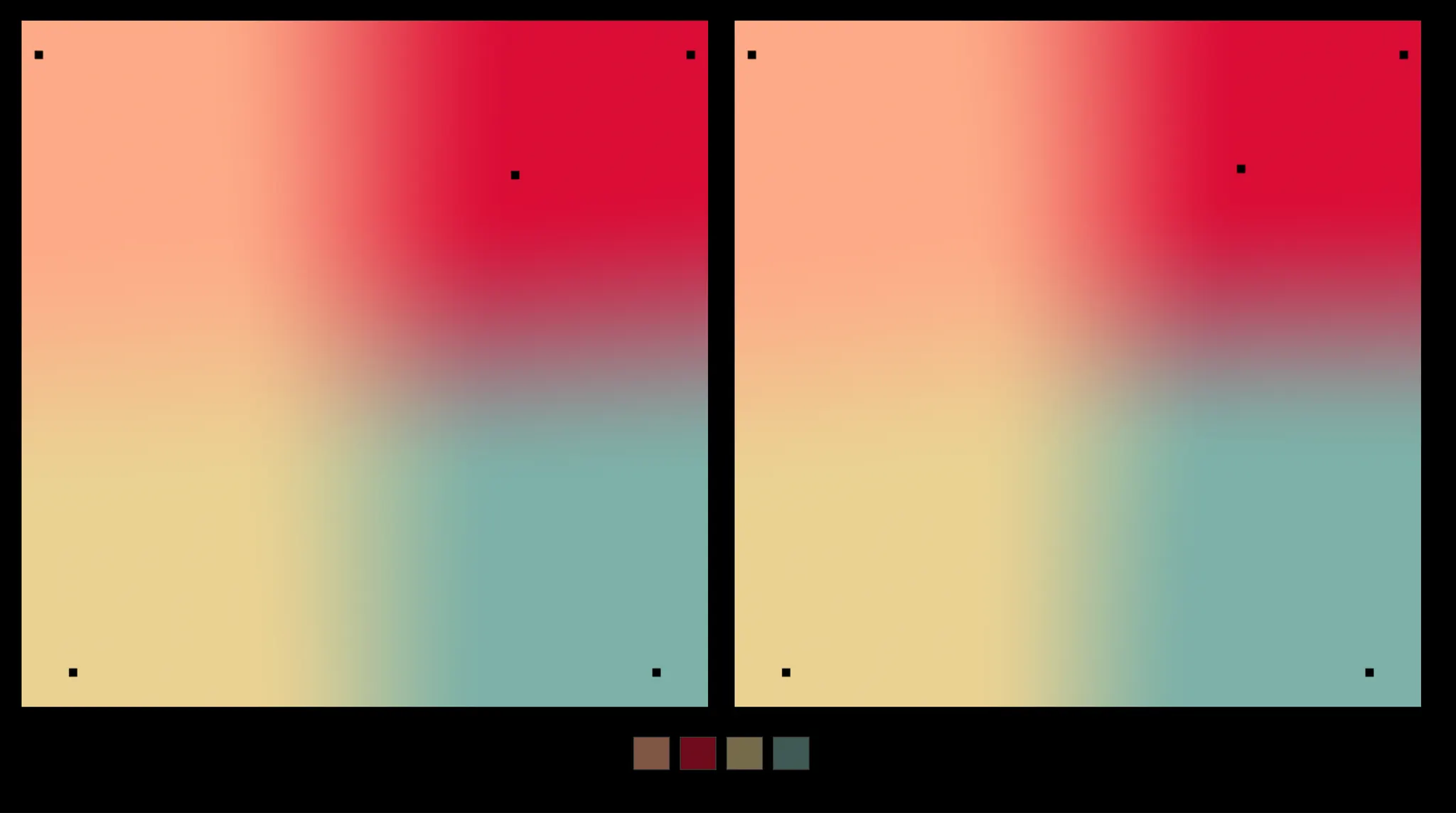 왼쪽에서 색상을 선택하면 오른쪽에서 그라디언트 뒤틀림을 조정 할 수 있습니다.