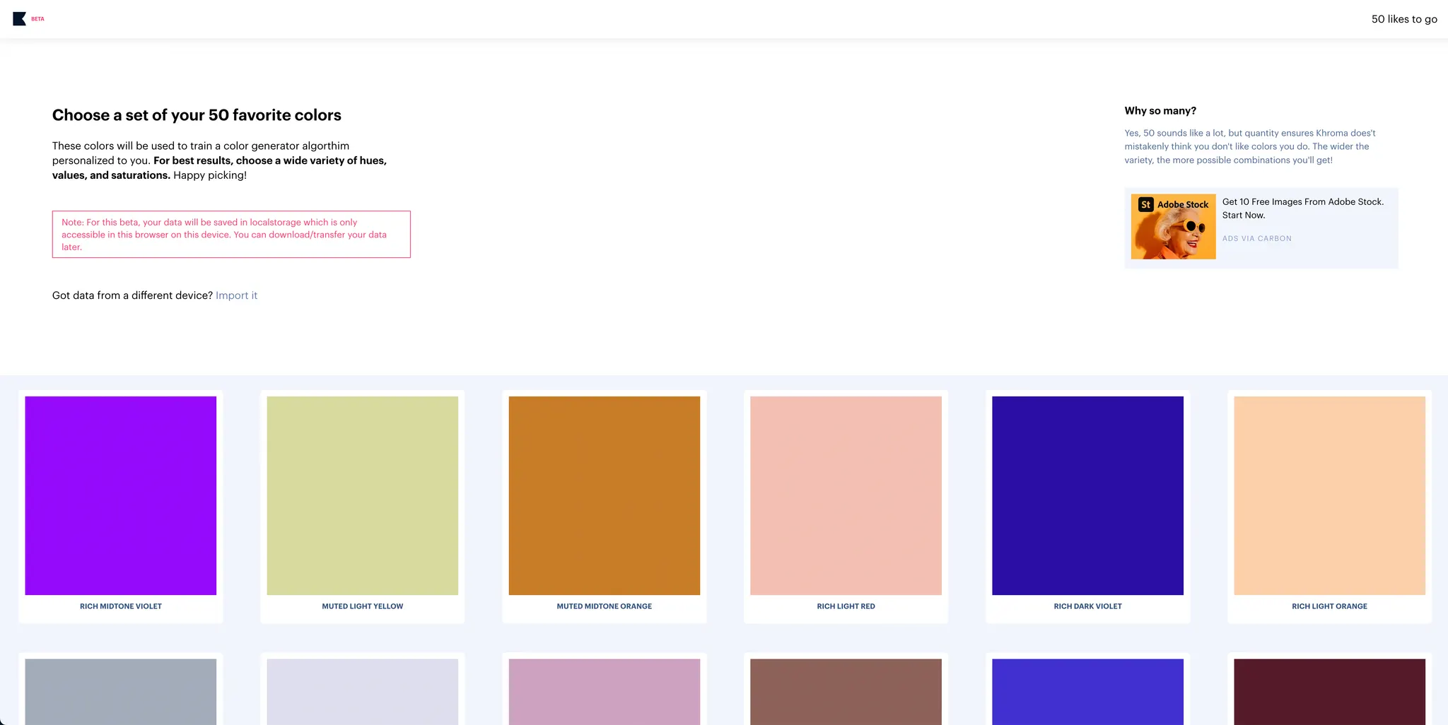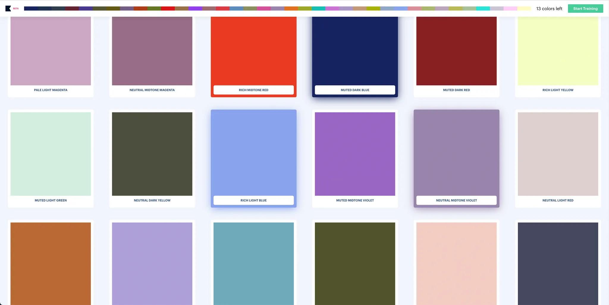 오른쪽 상단 초록색의 Start Training 버튼을 눌러 팔레트 생성을 시작합니다.