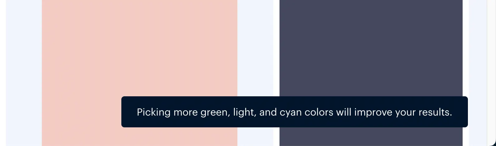 완벽한 컬러팔레트를 위해선 어떤 계열의 색상을 선택하면 좋은지 오른쪽 하단에서 알려줍니다.
